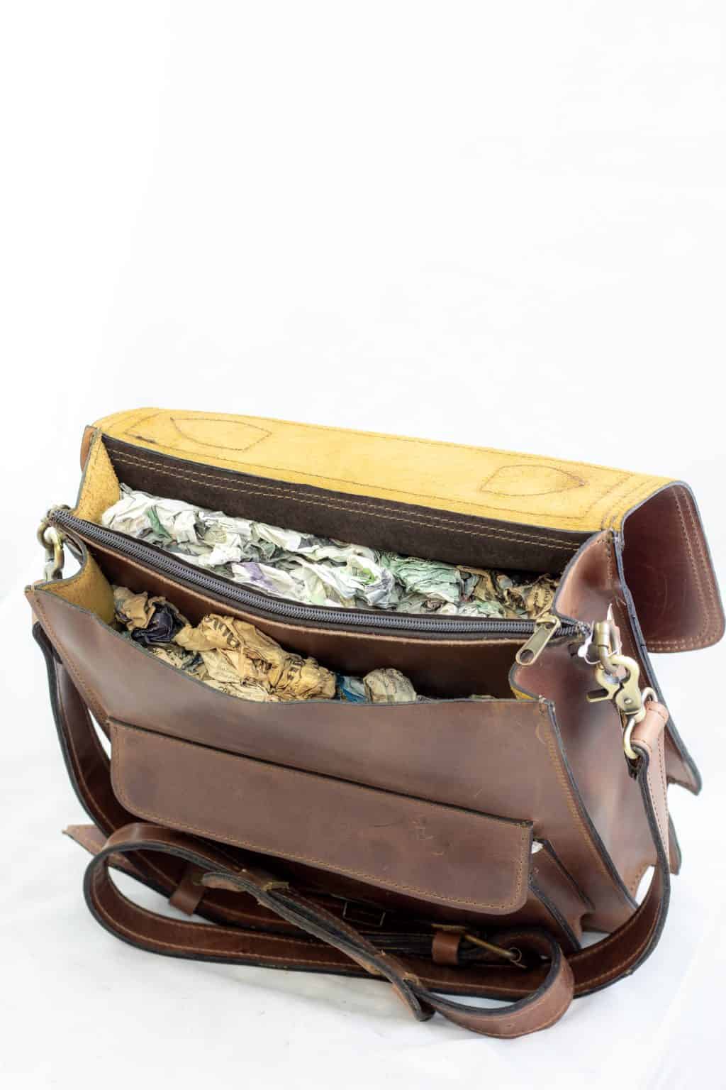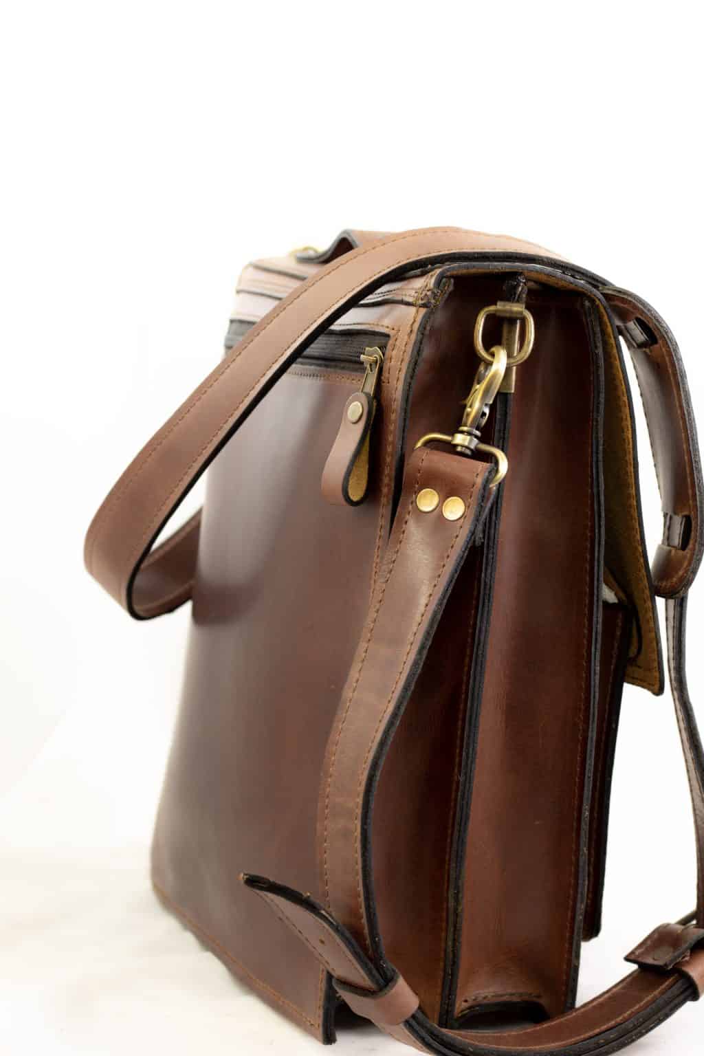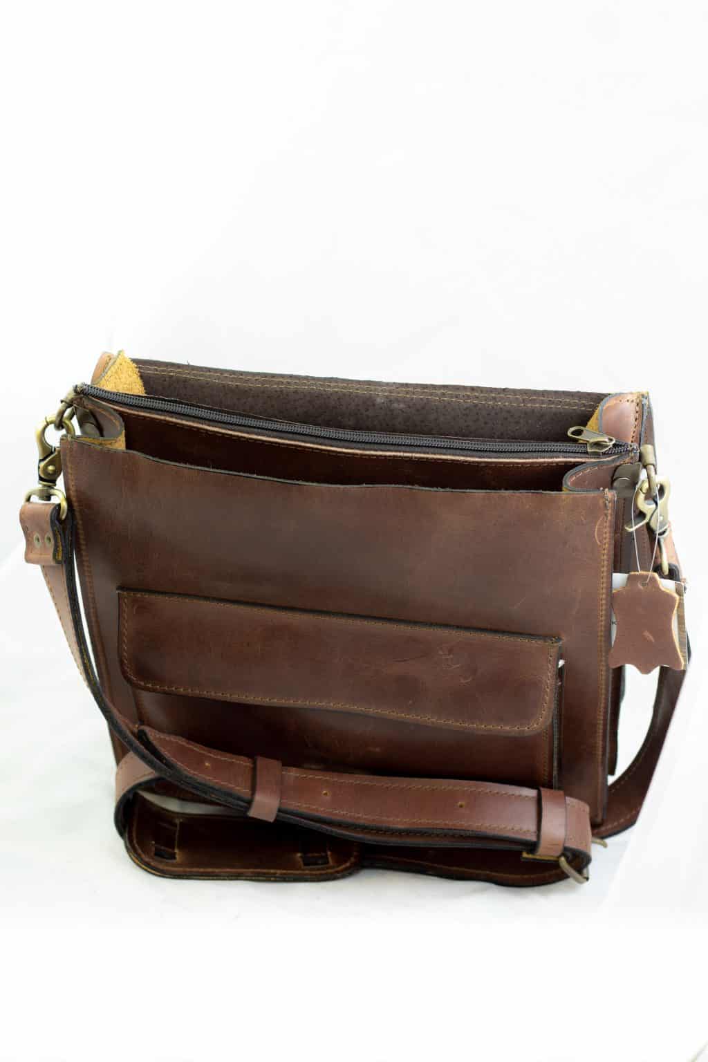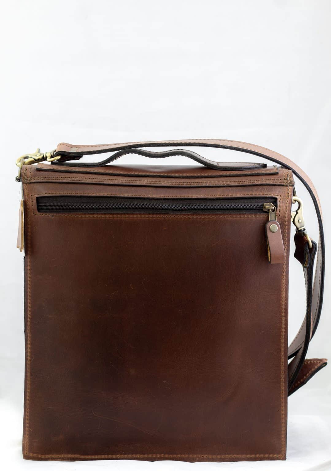 Crossbody bag from 100% cow leather, stitched with 20mm triplex nylon thread. Has also a pocket with a zipper in the back and front. Also adjustable two pieces of leather strap, has two compartments inside, between them a pocket with a zipper.