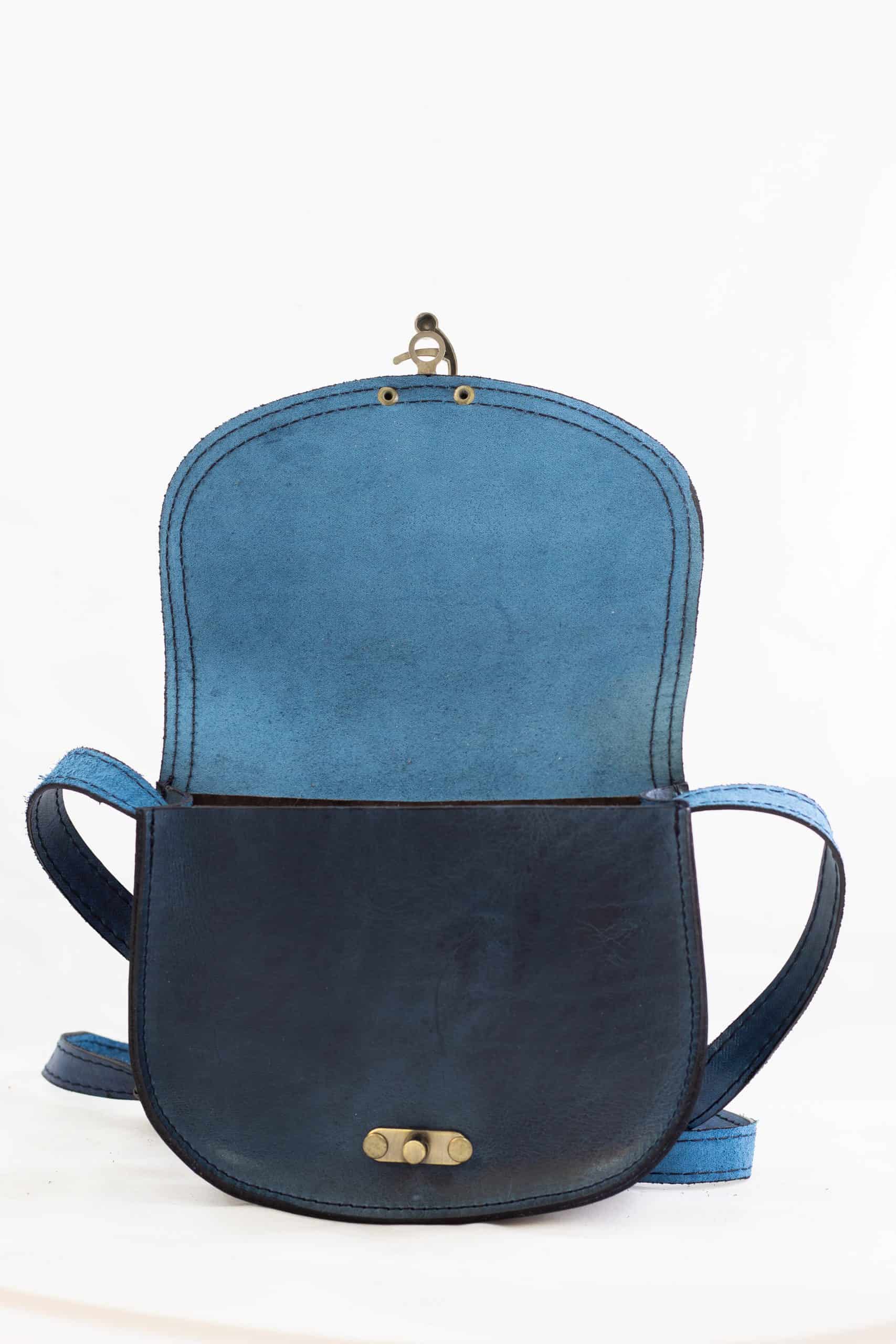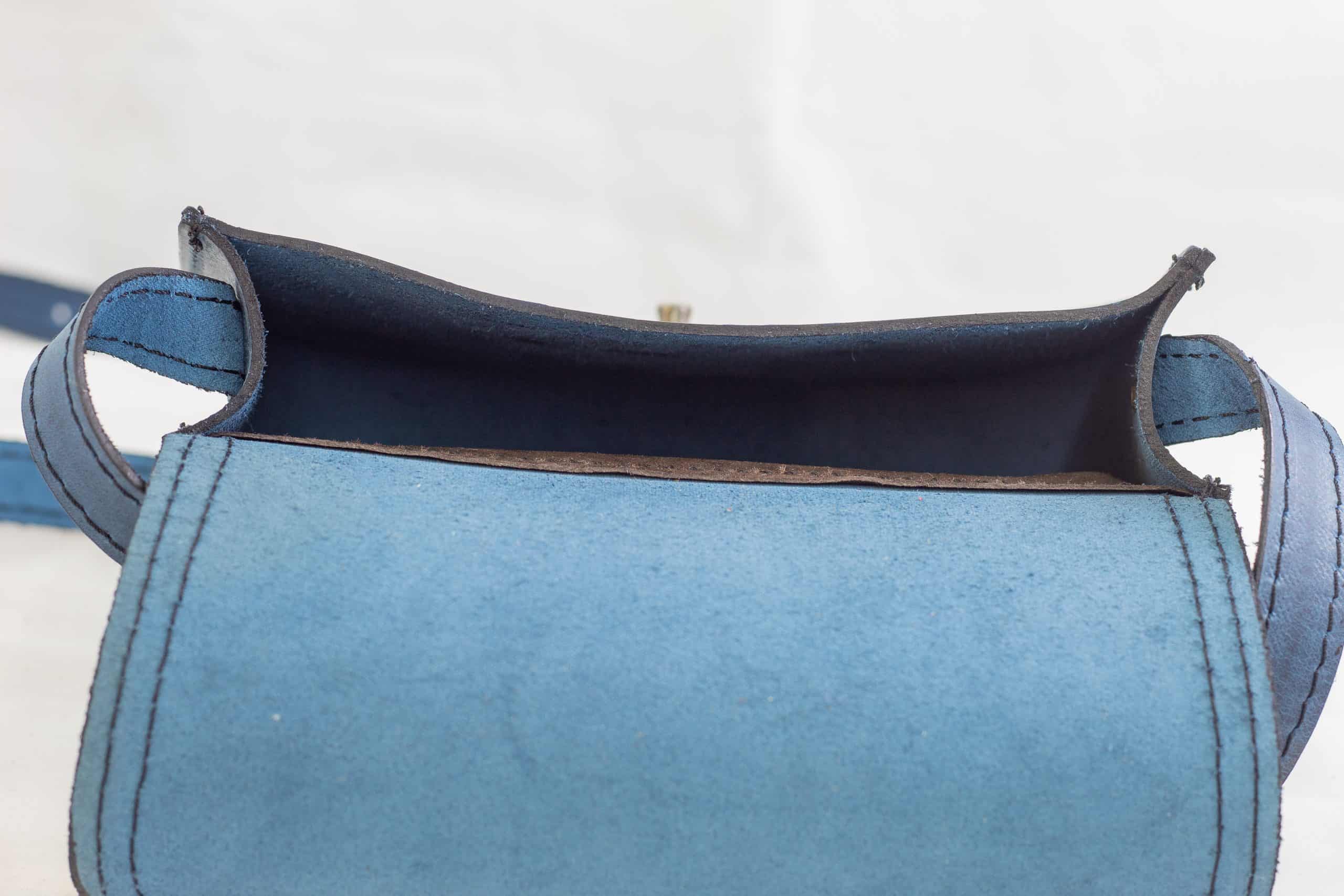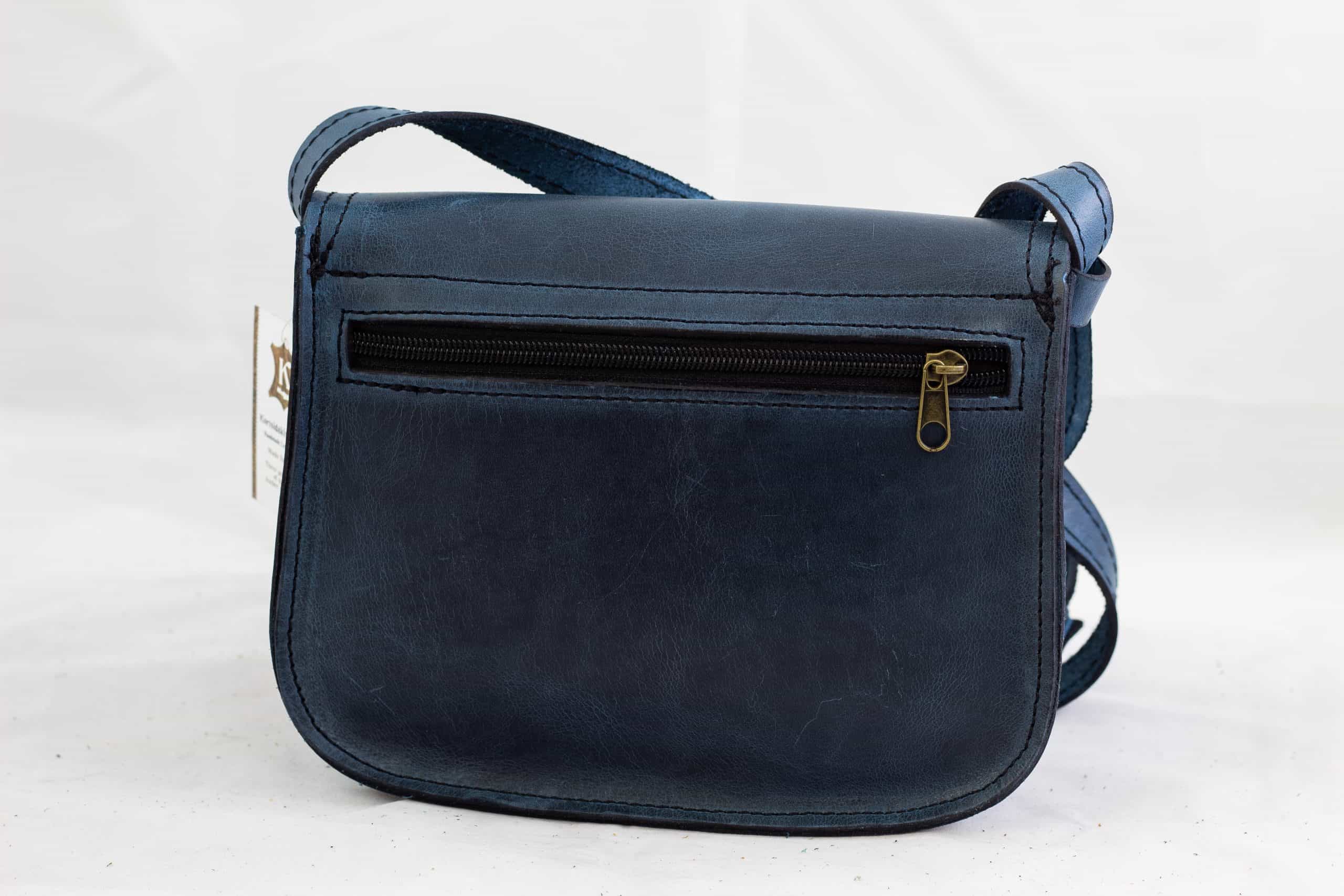 Crossbody leather bag from 100% cow leather, stitched with 20mm triplex nylon thread. Has also a small pocket with a zipper in the backside. Also adjustable leather strap