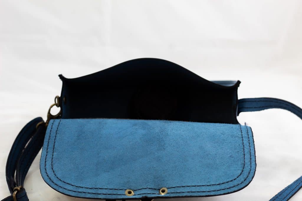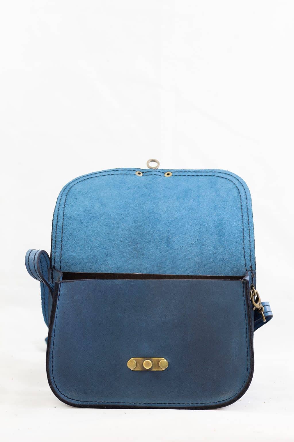 Crossbody leather bag from 100% cow leather, stitched with 20mm triplex nylon thread. Has also a small pocket with a zipper in the backside. Also adjustable leather strap
