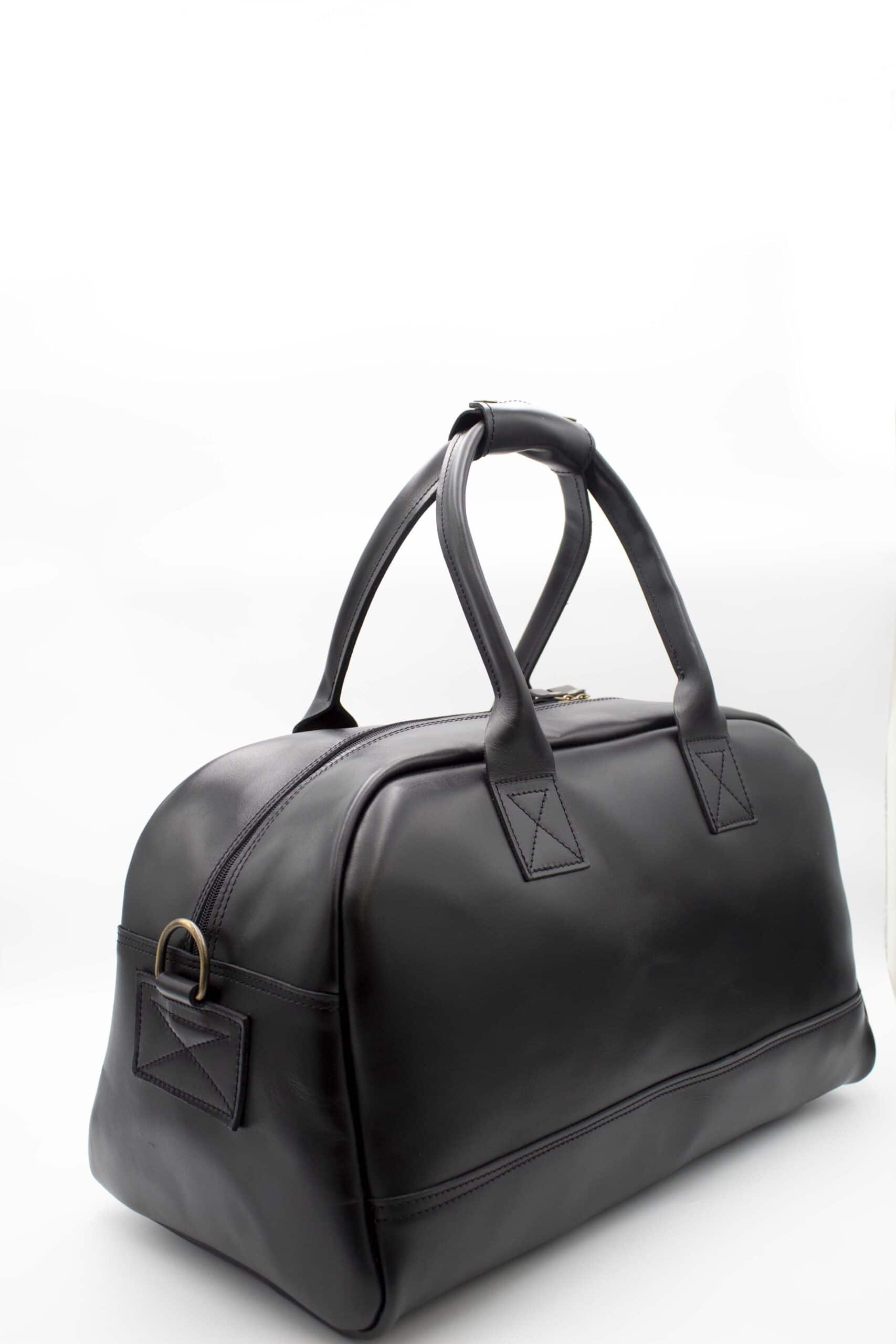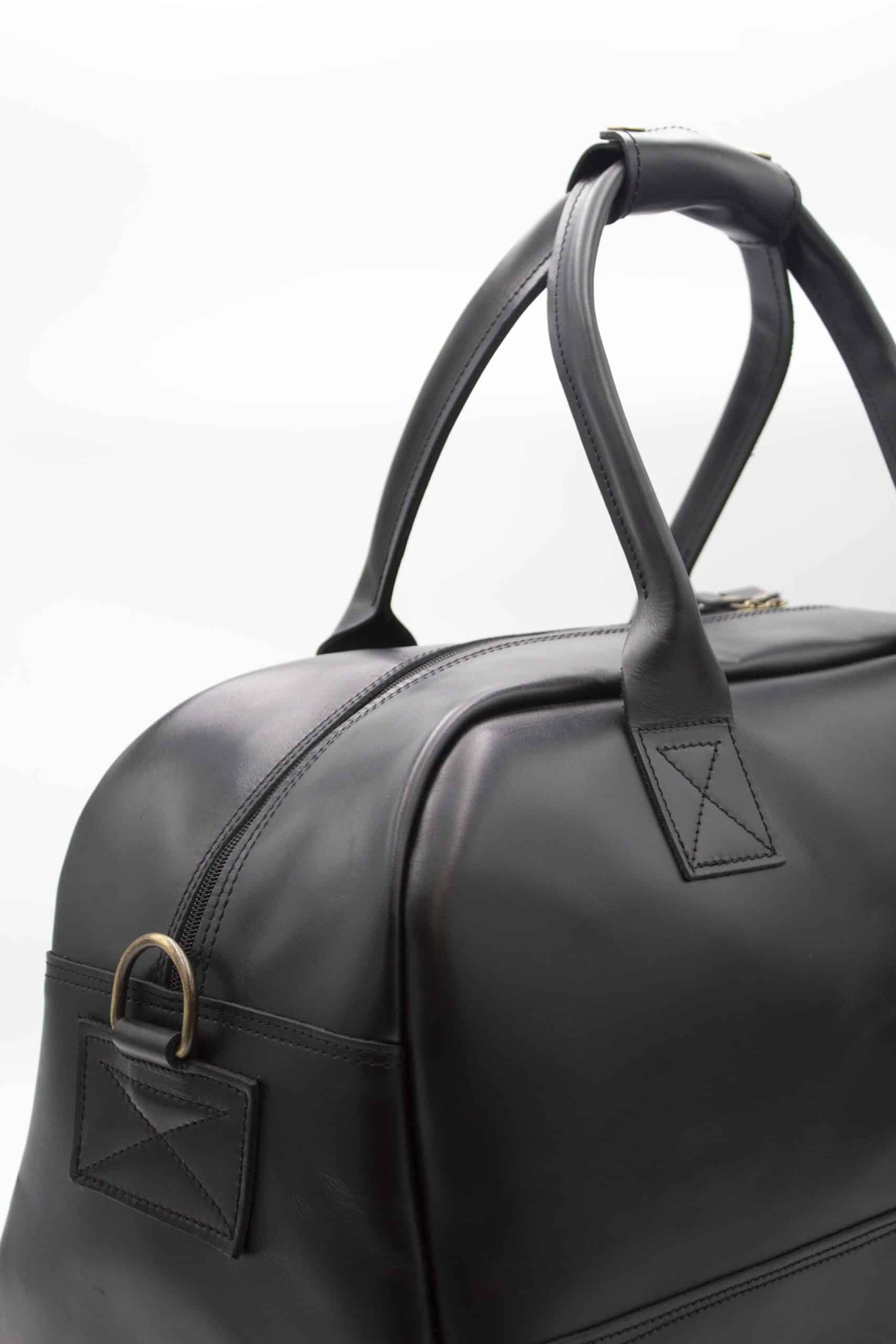 Handmade Leather Weekender Bag Greece – black travel duffel