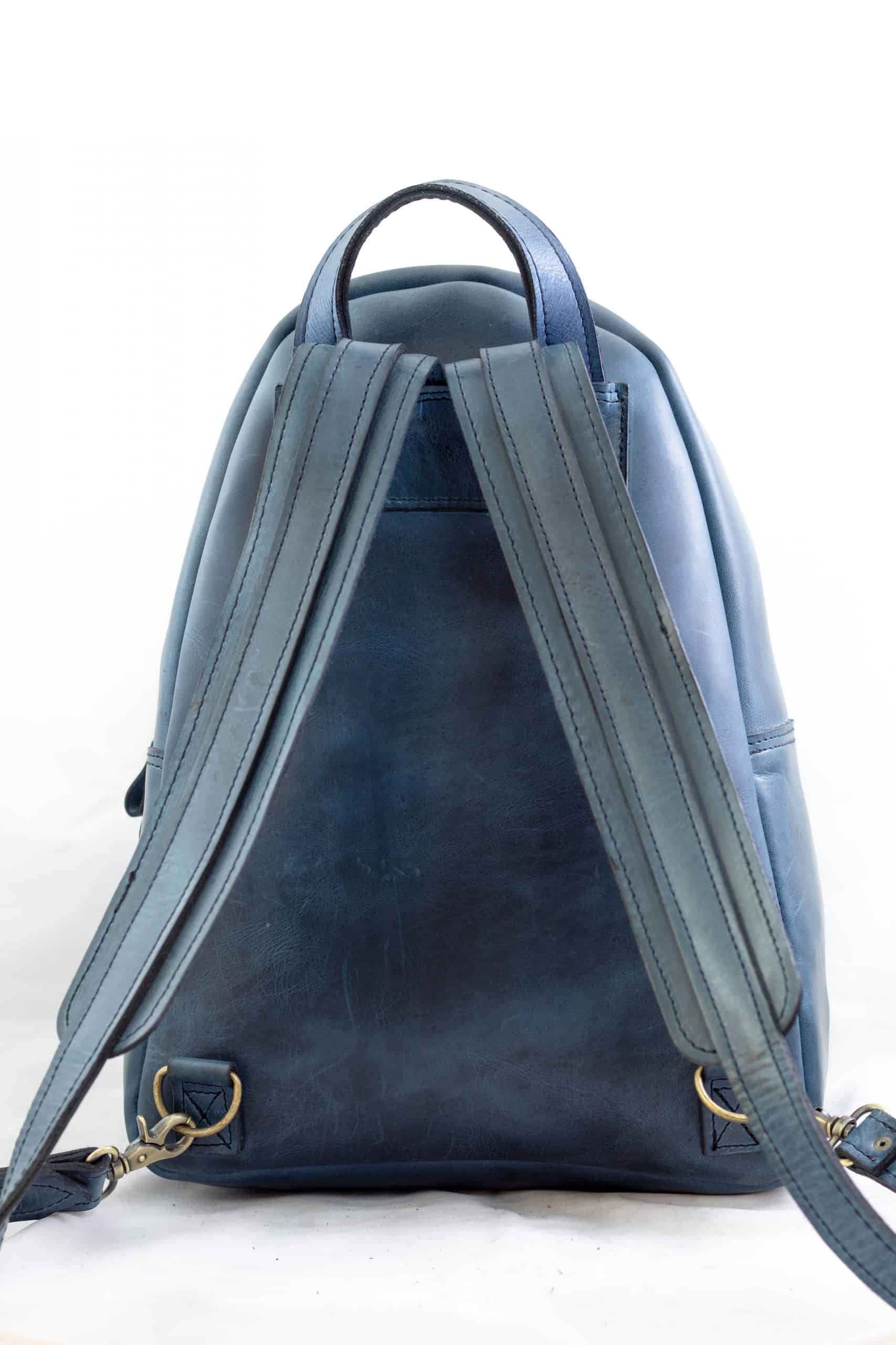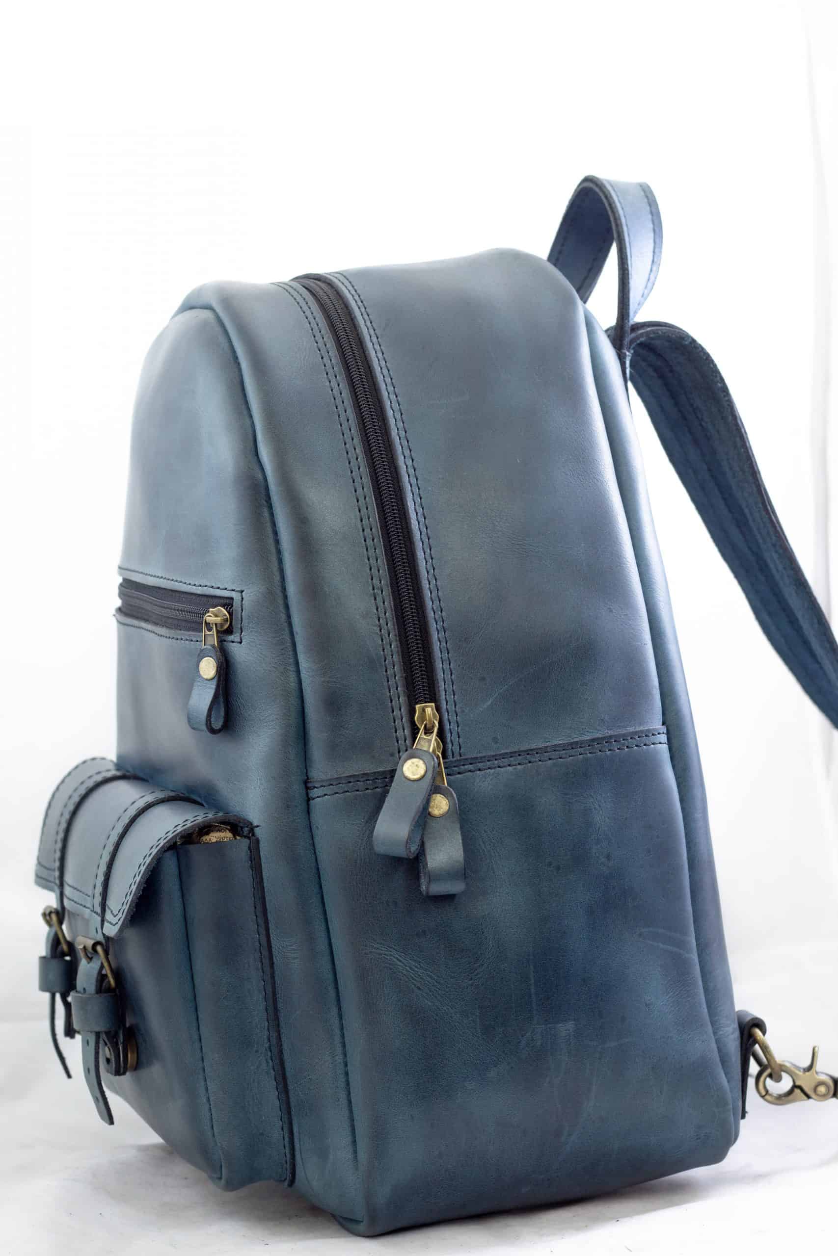 Unisex big-size rucksack handmade from 100% cow leather stitched with 20mm triplex nylon thread. Has one main pocket with an extra hidden pocket inside with a zipper, also one extra leather case designed for laptop or notebook. Also the straps are three pieces of leather for extra strength. The front pocket opens/closes with magnetic lock for greater convenience